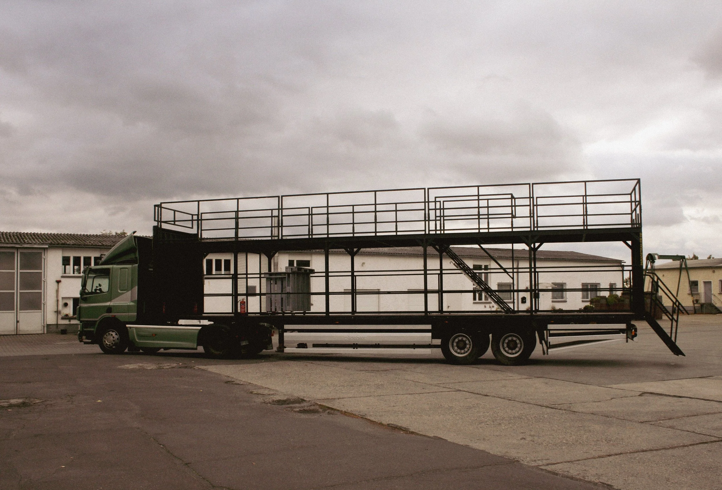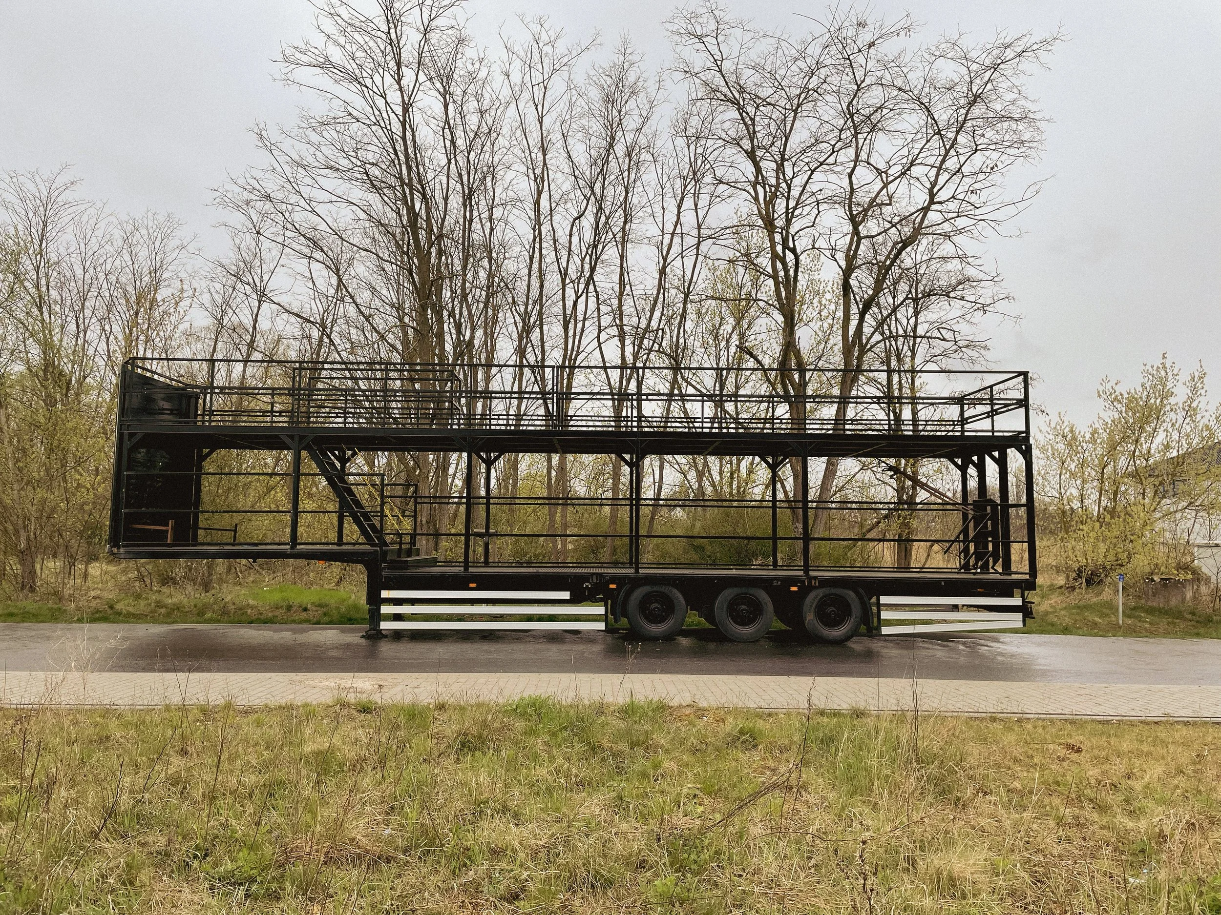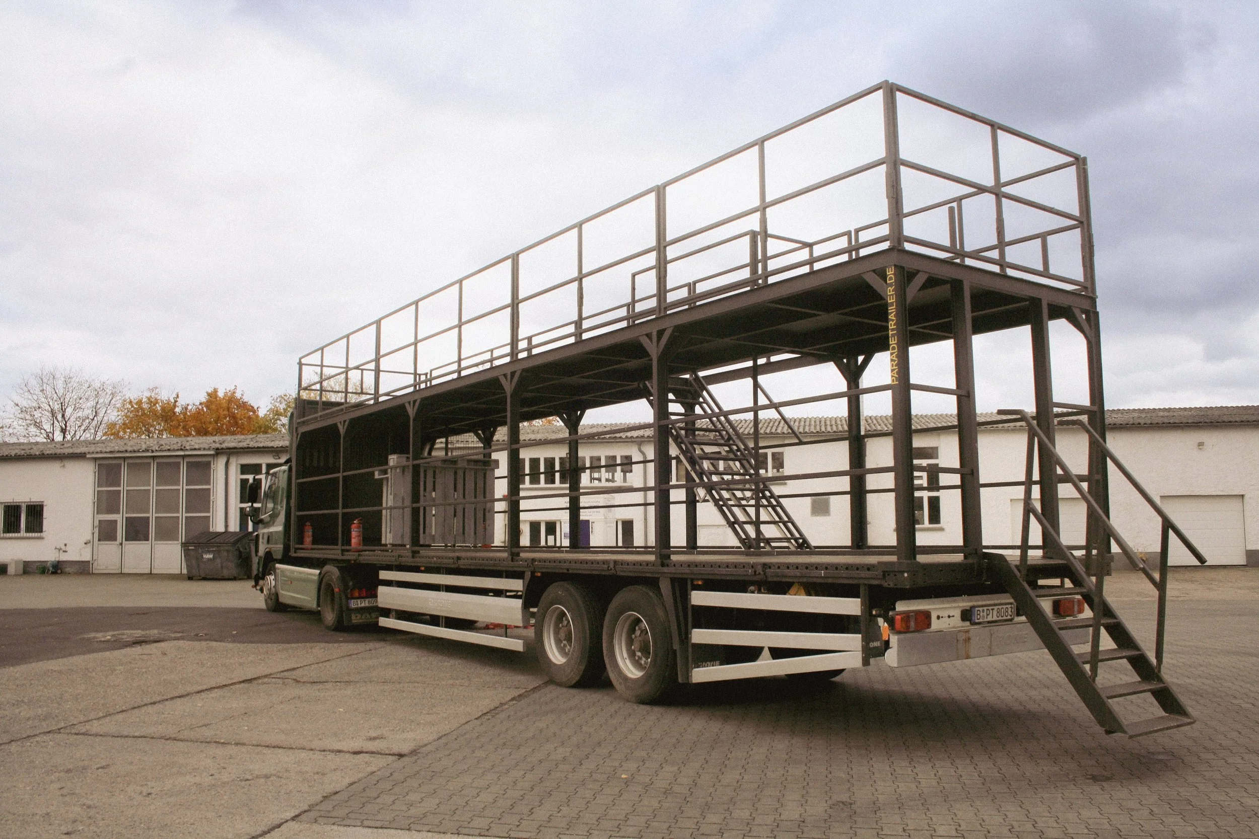 je nach Aufbau vom Equipment bis zu ca. 59 Person.Das Besondere am Trailer: Cabrio Verdeck.